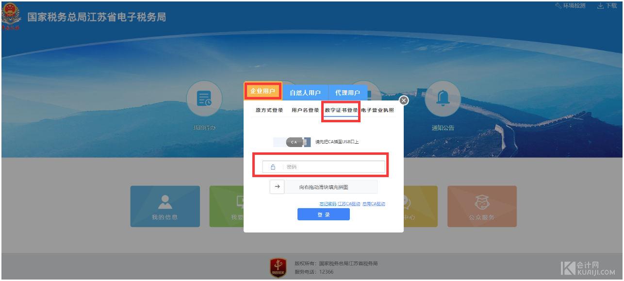 点击数字证书登录---输入登录密码---向右拼图---登录。数字证书:即为之前的江苏CA 和新的国信CA。
